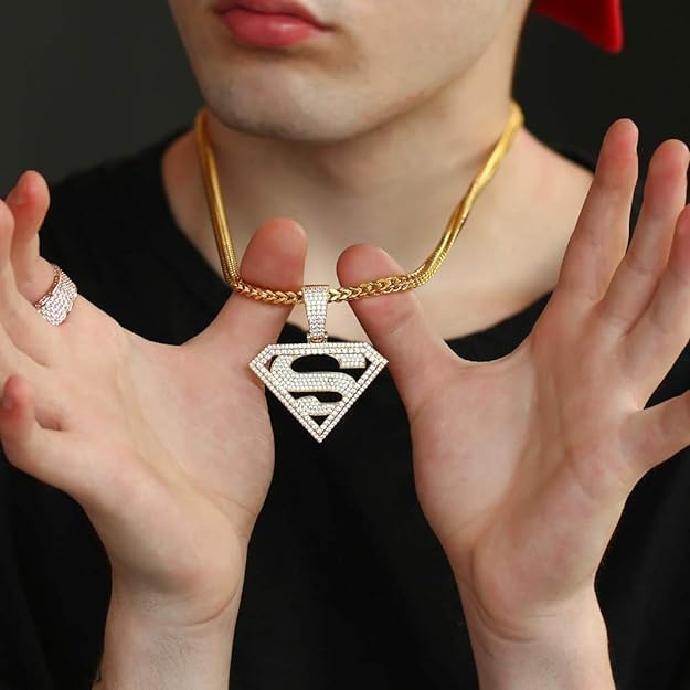 More information about 14K/White Gold Plated Diamond Shape Cubic Zirconia Superhero Pendant Necklace Hip Hop Full Iced CZ Out Pendant With 24'' Stainless Steel Franco Chain For Men Women