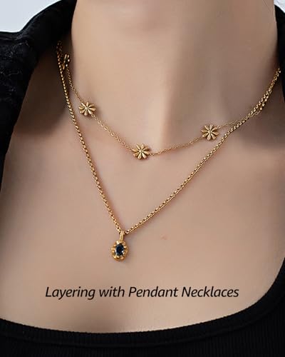 18K Gold Plated Daisy or Gold Ball Station Necklace for Women - Delicate Titanium Steel Non-tarnish Choker with Adjustable Chain, Perfect Layering Jewelry 3
