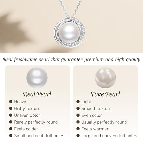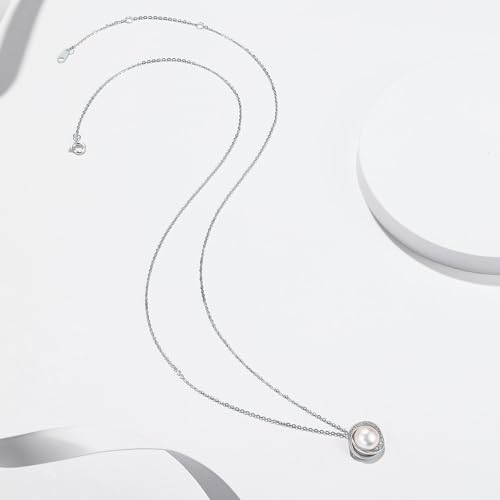 SUNFEEL Freshwater Pearl Necklace for Women Trendy, 925 Sterling Silver 8MM Real Pearl Necklace Pendant, Dainty Women's Jewelry Gifts for Mom Wife Girlfriend Anniversary Birthday Wedding Bridal 6