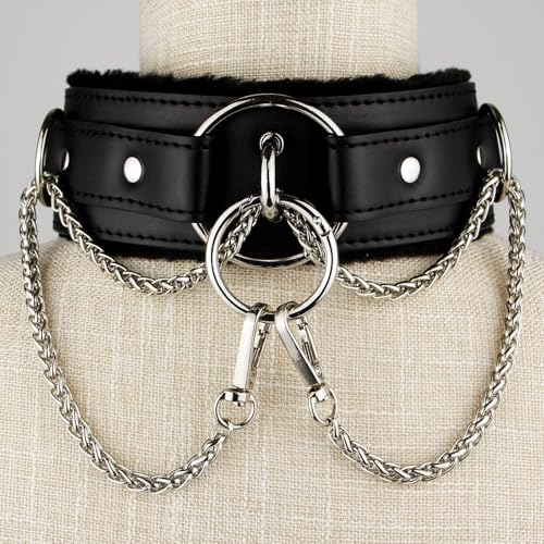 • This punk choker perfectly showcases its uniqueness and fashion sense through the exquisite combination of classic O-shaped pendant, D-ring, and fine alloy chain. The outer layer of the punk collar is made of soft PU leather, paired with a comfortable plush lining, all meticulously crafted by master artisans.