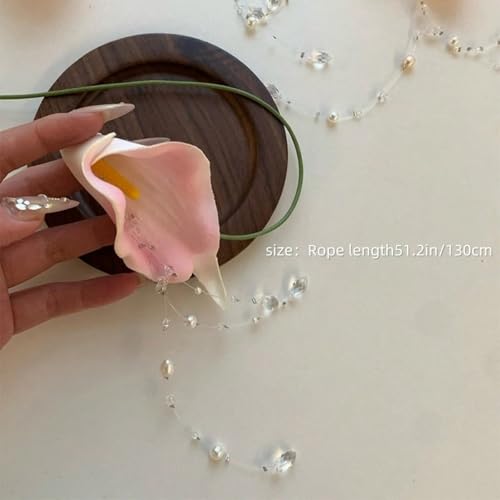 More information about Flower Necklaces For Women, Calla Lily Flowers Choker Necklace Colorful Adjustable Ribbon Wrap Pearl Crystal Tassel Statement Jewelry Gifts