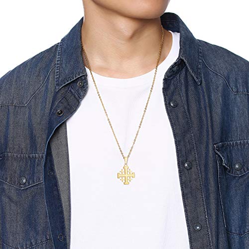 Hisatan Stainless Steel Jerusalem Crusaders Knights Templar Cross Pendant Necklace for Men Women,Free 24" Chain 1