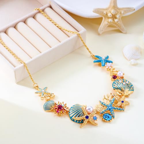 Dainty Gold Starfish Shell Necklace Pearl Coral Ocean Statement Chunky Necklace Collar Beach Summer Charm Jewelry 5