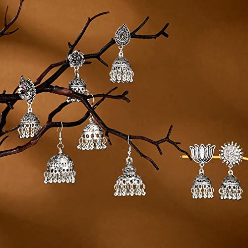 Glenmal 8 Pairs Jhumka Indian Earrings Metal Bohemian Chandelier Dangle Earring for Women Girls 6