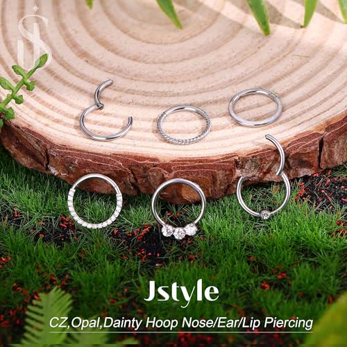 HOT ! Jstyle Hypoallergenic Surgical Steel Septum Nose Rings for Women Men Opal CZ Nose Hoop Ring Septum Rings Hinged Cartilage Earring Conch Lip Helix Daith Rook Tragus Piercing Jewelry 8mm 10mm