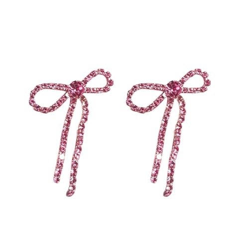 HOT ! Silver Rhinestone Sparkly Dangle Earrings - Hot Pink, Purple, Blue, Black, Red - Dainty Bow Earrings for Women - Christmas