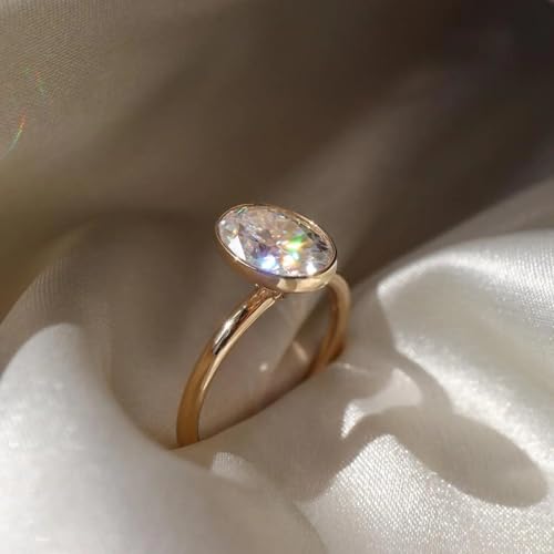 3CT Oval Cut Moissanite Ring 14k Solid Gold Vintage Bezel Setting Solitaire Engagement Ring Classic Anniversary Jewelry for Women Dainty Promise Gift for Her 5