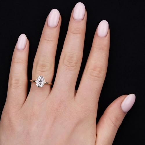 3CT Oval Cut Moissanite Ring 14k Solid Gold Vintage Bezel Setting Solitaire Engagement Ring Classic Anniversary Jewelry for Women Dainty Promise Gift for Her 6