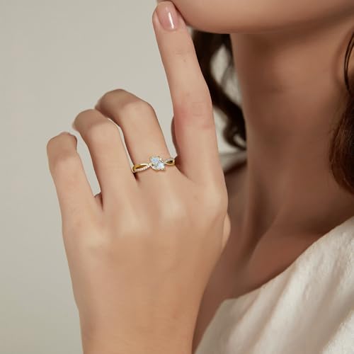 • UNIQUE DESIGN : This opal love ring brings you both elegance and dainty. The 14K gold plated stacking wedding band can be worn alone or stacked with other engagement rings
