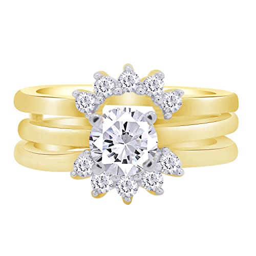 AFFY 0.47 Carat Round White Cubic Zirconia Solitaire Enhancer Guard Ring 14K Gold Over Sterling Silver 5
