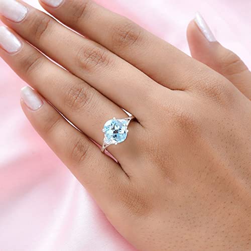 Blue Topaz Ring in 925 Sterling Silver Birthstone Rings for Women - Promise Wedding Engagement Jewelry Birthday Gifts for Womens 5