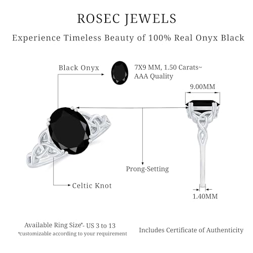 Natural Black Onyx 7X9mm Oval Engagement Ring, AAA Quality, Certified Onyx Celtic Knot Ring (Ready to Gift) 1