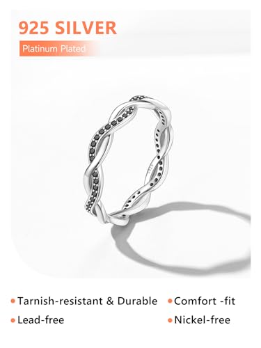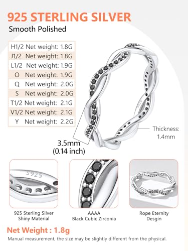 • [Stylish Design]Simple and classic twisted rope design, novel and never go out of style. Black and white zirconia color options.A wonderful choice as a wedding ring band, it is also the perfect band to stack or wear on its own.