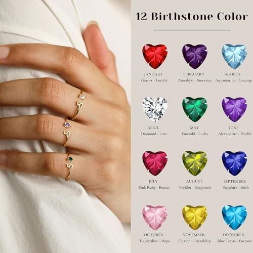 Birthstone Rings for Women 26 A-Z Initial Ring Adjustable 14k Ring Birthday Gifts for Her Rings for Teen Sister Bridesmaid Gifts Dainty Letter Jewelry 4