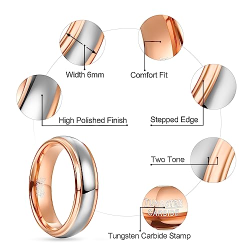 NUNCAD Wedding Band for Men Women Tungsten Carbide Ring 4mm/6mm/8mm High Polished Two-Tone Engagement Ring Step Edges Domed Comfort Fit Size 5-12 6
