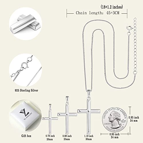 YL Cross Necklace for Women Sterling Silver Plain Cross Pendant Necklace High Polished Jewelry for Men (0.79"- 1.18") 1