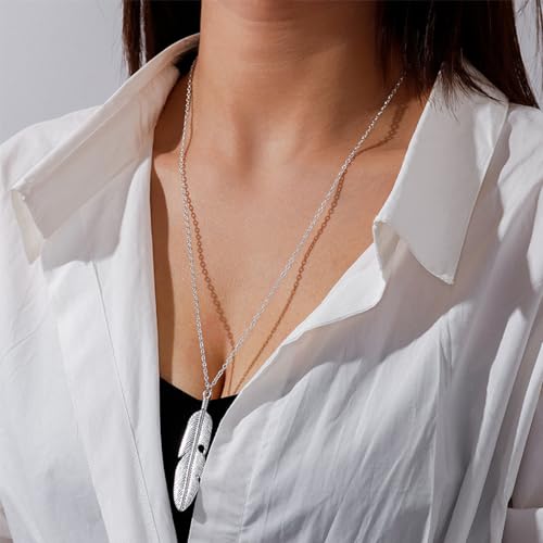 Kercisbeauty Silver Feather Pendant with Chain Necklace Long Necklace for Women Men Unisex 5