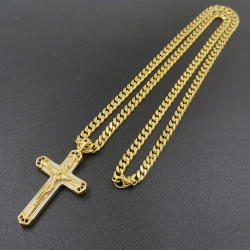 Generic Men's Crucifix Cross Pendant with 18K Gold Cuban Chain Jesus Necklace in 24 Inches, Gold/Silver Two tones 6