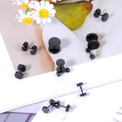HOT ! Giantree 6 Pairs of Black Stud Earrings for Men and Women, Faux Gauges Earrings, Hypoallergenic Earrings, 4-10mm Ear Tunnel Stainless Steel Dot Earrings for men and Women (Black)