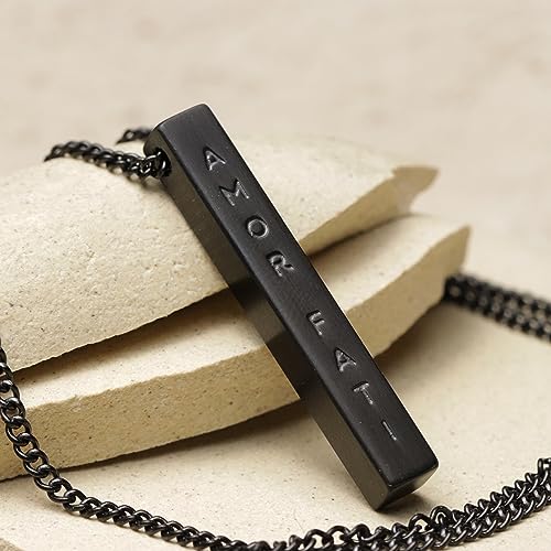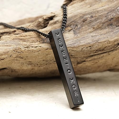 Stoic Muse Memento Mori Double Sided Pendant Bar Necklace Matte Black 5