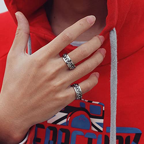 • STRESS RELIEF TOOL – Curb chain inlaid design, masculine and trendy. The centre chain is locked within the main band, allowing for manual spinning, making it a fun and engaging ring. This fidget spinner ring is an excellent tool for relieving anxiety, nervousness, or other bad habits, especially for the manic or fidget people. You can wear it to relax yourself during class, meeting, dating, or other nervous moment.