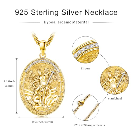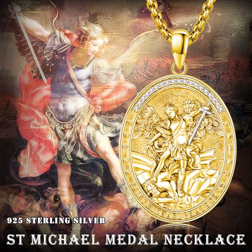 St. Michael Necklace 925 Sterling Silver Gold Police Archangel Michael Pendant Necklace Archangel St. Michael Pendant Amulet Religious Jewelry Gift for Men Women 4