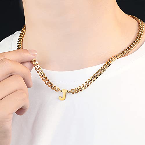 Initial A-Z Cuban Link Chain Necklace for Men Women Stainless Steel Letter Pendant Chain 6.5mm Width 18+2 Inches Jewelry Gift for Men 6
