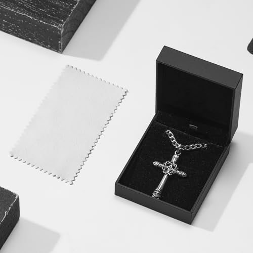 • Premium Material: The cross pendant is crafted from tarnish-resistant Oxidized Sterling Silver. The chain is made from sturdy stainless steel, combining durability with style for everyday wear. Lead and Nickel free.
