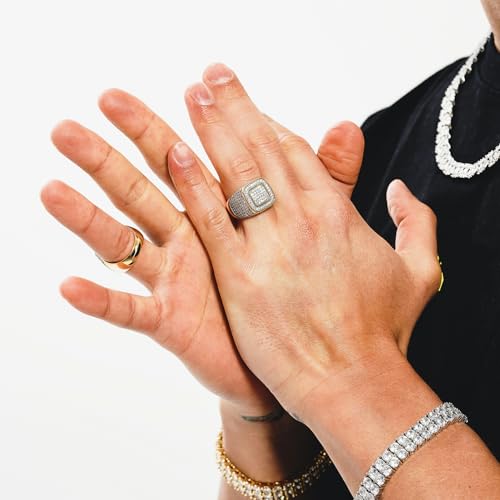 JINAO Men Ring 14K Gold Plated Cluster Iced Out Lab Simulated Diamond Band Micropave Bling Wedding Pinky Ring for Women 4