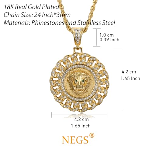 More information about NEGS 18K Gold Plated Roaring Lion Head With Green Red Eyes Pendant Punk Rock Stainless Steel Necklace, 24 Inch Chain For Men Hip Hop Animal Jewelry-I'm the King