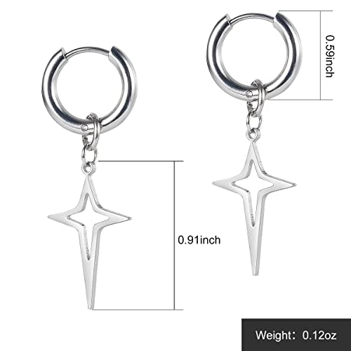 Star Earrings Men Stainless Steel Small Hoop Earring Dangle Adult Fashion Huggie Piercing Jewelry Earrings for Party Birthday Gift, Silver 4