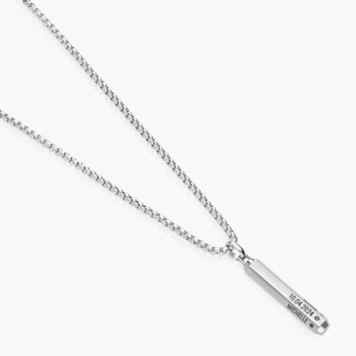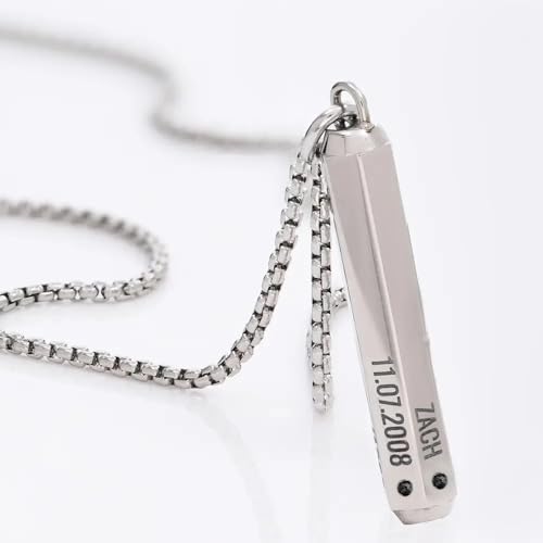 • FULLY PERSONALIZED - Sure, not all men wear necklaces. But when they do, it must be a fashion statement done just right. With our 3D Engraved Hexagon Bar Necklac, you have a great combination of style and meaning. Customizable on up to 6 sides. Available in 2 lengths & All letters are capitalized!