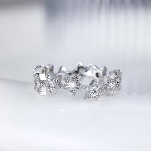 Silver Star Ring with Cubic Zirconia for Women Men, Irregularly Arranged Stars Hypoallergenic Jewelry Gift Wedding Band Promise Ring 5