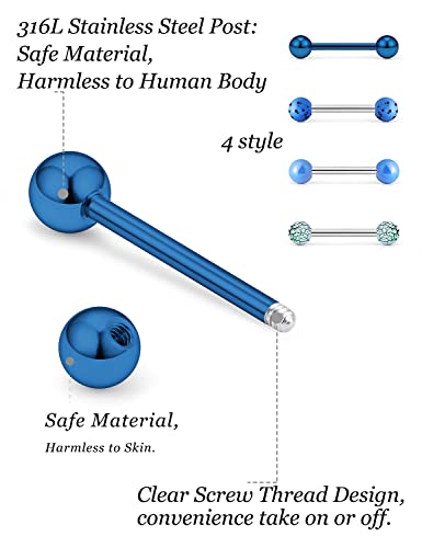 • [PRODUCT SIZE]: Ring Gauge: 14g=1.6mm, Straight Bar Length: 16mm(5/8Inch); Ball Size: 5mm-6mm. Color: Mix Color