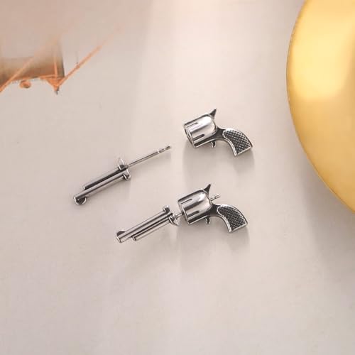 HZMAN Stainless Steel Personality Hip Hop Street Style Gun Stud Earrings for Men Women 4