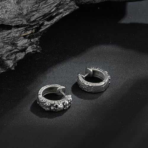 Vintage Skull Hoop Huggie Earrings for Men, Stainless Steel Punk Skeleton Biker Earrings 4