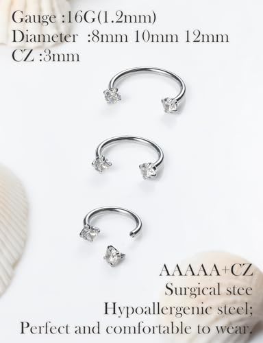 • (Silver horseshoe rings 6pcs) Package: 6 Pices of surgical-grade stainless steel horseshoe nose rings (circular barbells)