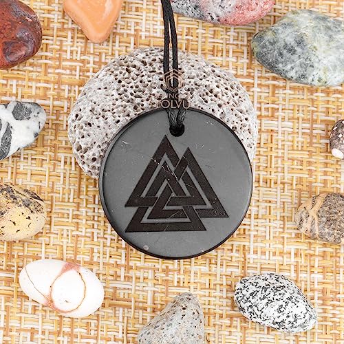 • ✅This shungite Valknut pendant is handmade-carved from a solid piece of natural authentic shungite stone. This is not a pressed stamped factory mold. The size of this pendant is approximately 1.4 inches. But the sizes of each pendant are unique and slightly different, because it is handmade. The drawing of the Valknut symbol is made by engraving and will never be erased.