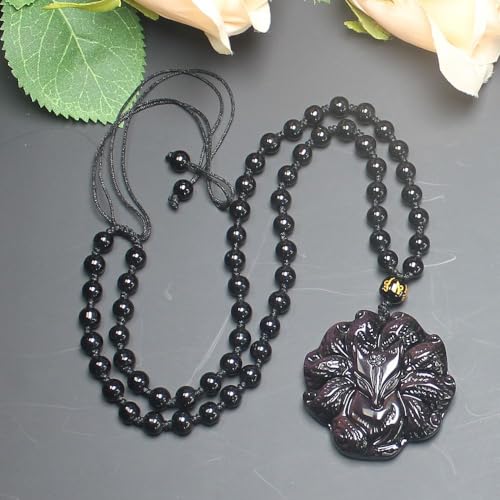 More information about Crystal Natural Gold Silver Rainbow Obsidian Nine Tail Fox Necklace Amulet Pendant Bead with Adjustable Chain for Women Men