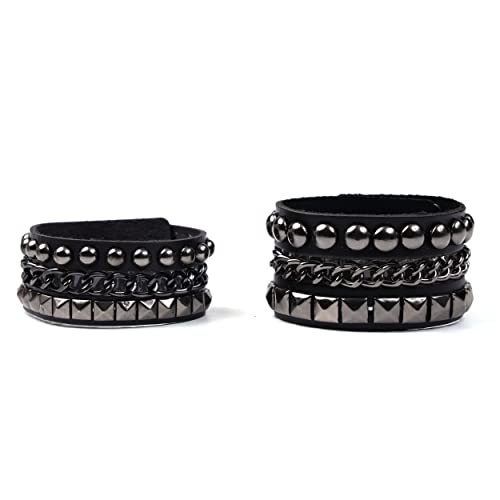 Eigso Black Leather Bracelet Punk Spike Rivet Cuff Bangle Metal Studded Halloween Wristband for Women and Men 2
