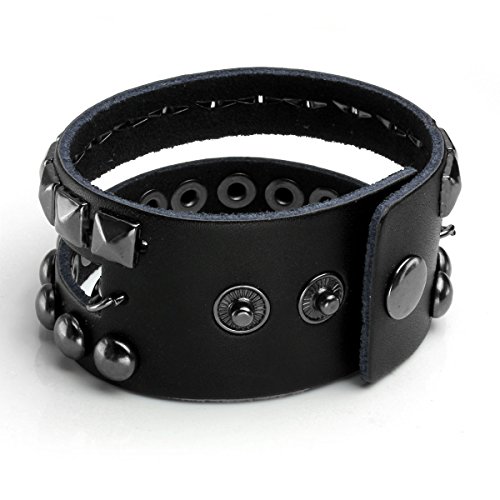 Eigso Black Leather Bracelet Punk Spike Rivet Cuff Bangle Metal Studded Halloween Wristband for Women and Men 1