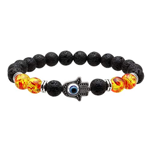 HOT ! MILAKOO 7 Pcs Evil Eye Chakra Bracelet Lava Stone Essential Oil Diffuser Bracelet for Men Women