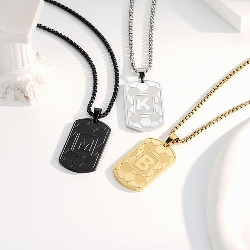 HOT ! Soccer Initial A-Z Dog Tag Necklace for Men Soccer Charm Pendant Stainless Steel Chain 22+2 Inches Personalized Sports Athletes Jewelry Soccer Gift for Men