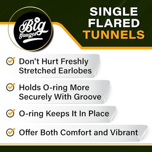 • FEEL SECURE - The rubber o-ring in these single flare ear gauges means you don’t have to worry about them staying in place. DETAILS : 5mm Ear Gauges, 4 Gauge Stainless Steel Earrings, Small Gauges For Ears, 5mm Ear Plugs, 5mm Tunnel Gauges, 4g Plugs Single Flare.