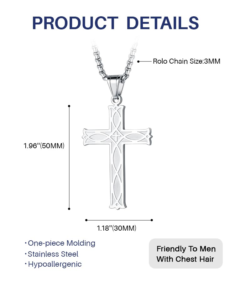 • Great Gift Idea: There are 24'' and 28'' cross chain for men. It is a wonderful gift for graduation, birthday, Valentine's Day, Father's Day, Thanksgiving Day, Christmas, etc.