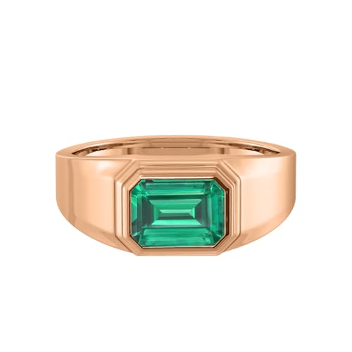 1CT/1.5CT/2CT Emerald Signet Ring - Cushion/Emerald/Oval/Round Cut Green Gemstone Mens Pinky Rings 10K 14K 18K Solid Gold Sterling Silver Emeralds Signet Pinky Ring for Anniversary Fathers Day 1