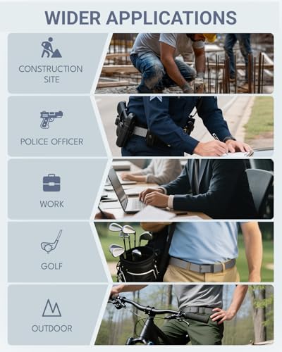 • ★【Perfect New Invisible Belt】-The duty buckle has anti-rust, anti-corrosion, anti-scratch function. Compare with leather belt, the No-hole fabric belt will not aging/break after long time use. Designed a hide-able belt tail style, you never need worry controlling excess waistbands anymore.