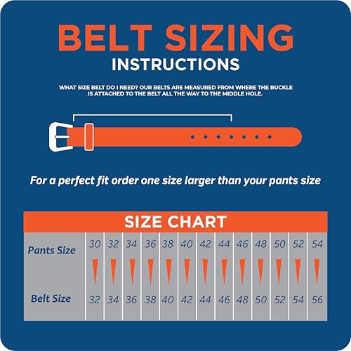 • SELECT THE CORRECT SIZE BY ALWAYS GOING ONE SIZE UP OF YOUR PANTS SIZE - Example, if you wear a size 36 pants, you should order a size 38 belt. for odd sizes (33, 35, 37, etc.) for example a size 37 you should order a size 38.