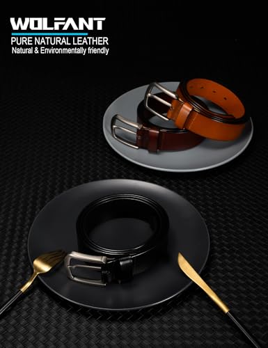 WOLFANT Men's 1.5" Top Full Grain Leather Belt in Gift Box,100% Italian Real Solid Leather 3