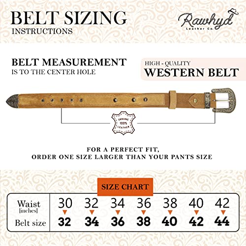 RAW HYD Leather Western Belts for Men - Classic Cowboy Belts for Men w/Embossed Buckle - Adjustable Men’s Western Belt. 1